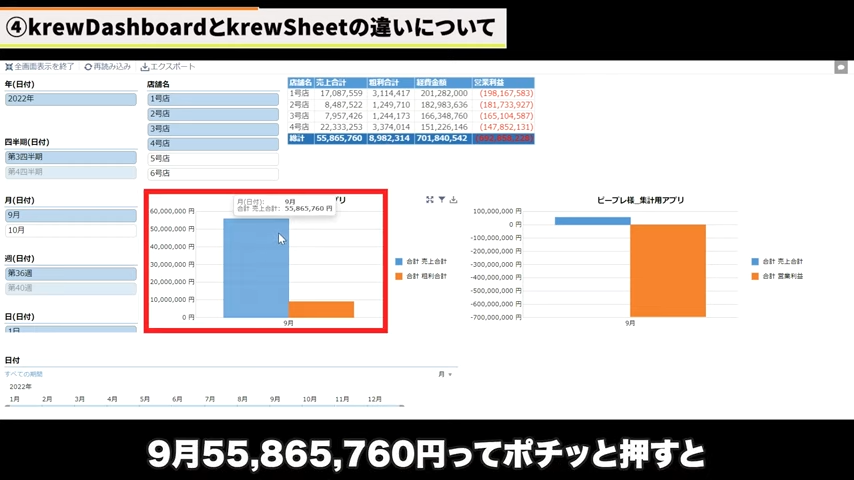 9月5586万5000円ってポチッと押すと9月のデータが出たりとか、そんな感じで使えたりもします。
