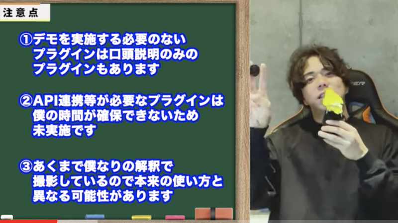 ①デモを実施する必要のないプラグインは口頭説明のみのプラグインもあります
