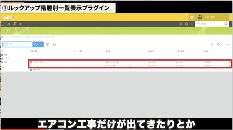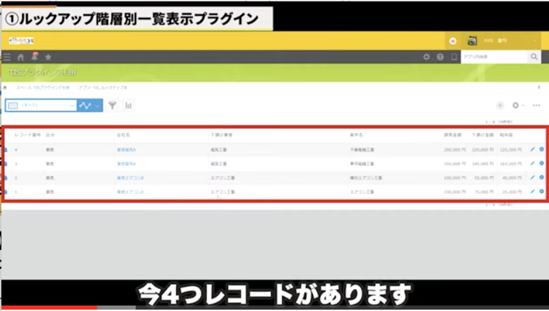 今4つレコードがあります エアコン工事と電気工事 で、それぞれ案件名があって請負金額と下請け金額ってあるんですけど