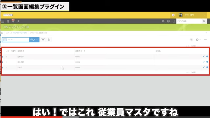 はい!ではこれ従業員マスタですね ここにプラグインを入れてみます