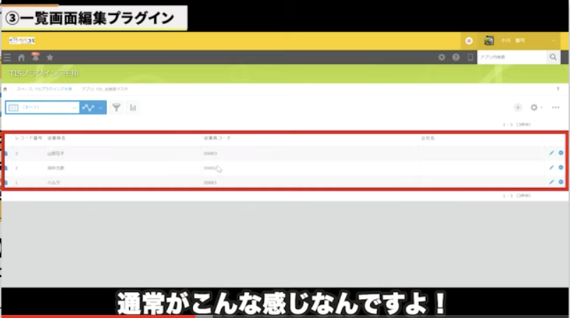 一覧のプラグイン未使用版だとこれですね 基本はこの形なんですよkintoneの標準機能のテーブルって!