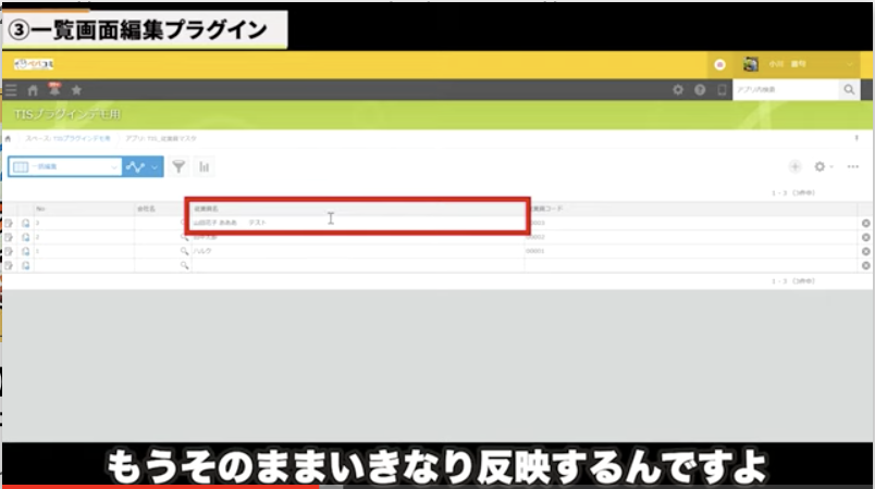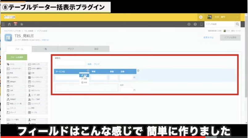 現状kintoneの標準機能でこういうのはないので、こういうTISさんのプラグインを使って活用してもらうって感じになります!