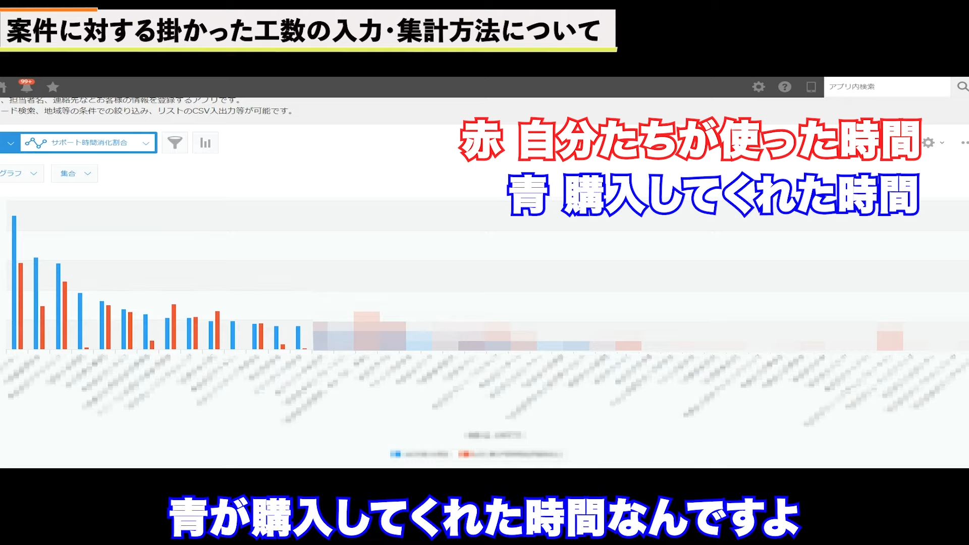 赤が自分たちが使った時間、青が顧客が購入してくれた時間です。このように、視覚的にわかりやすく表示することができます。