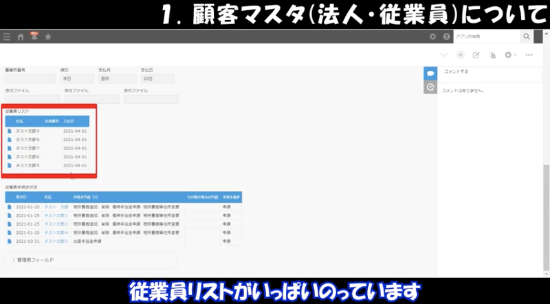 この理由はペパコミのお客様が 新しく入った人への引継ぎも兼ねて構築したい という要望があり それをkintoneで実現しました