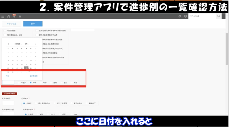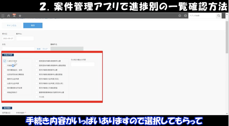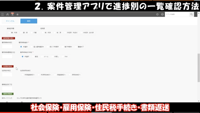案件管理では社会保険・雇用保険の手続きを管理するアプリです