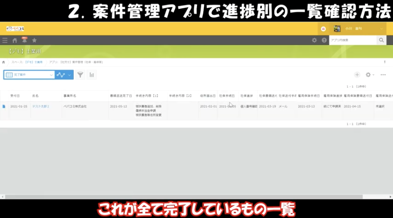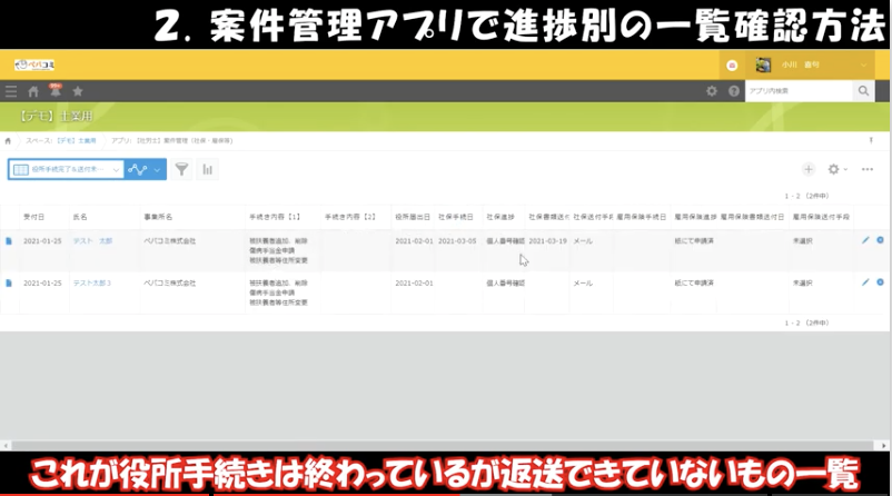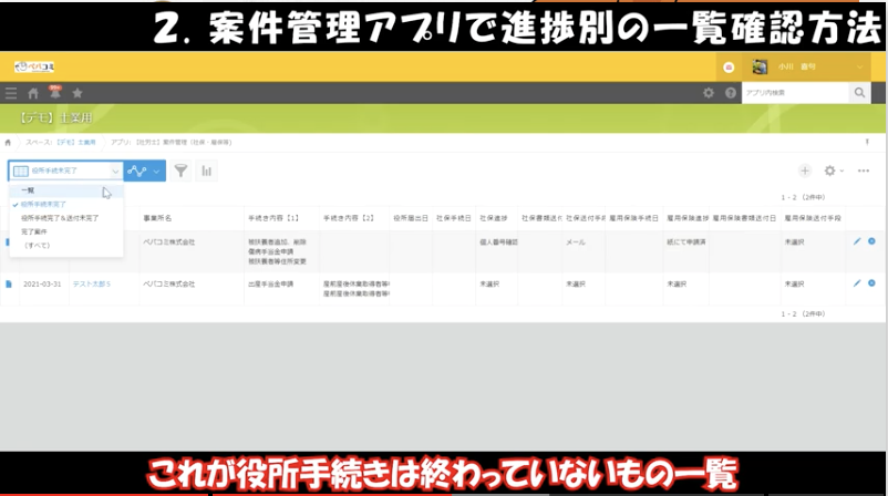 ②案件管理アプリで進捗別の一覧確認方法