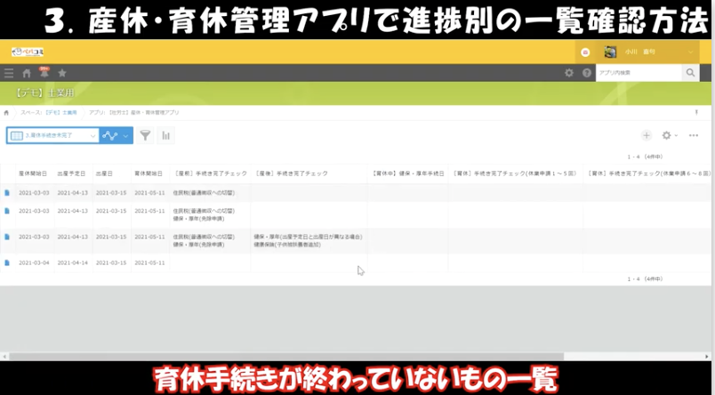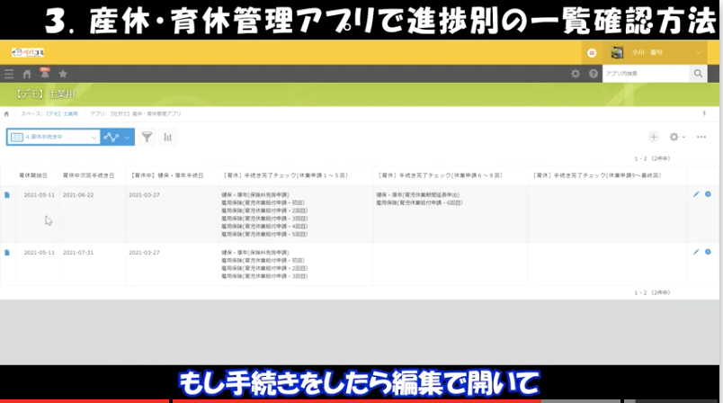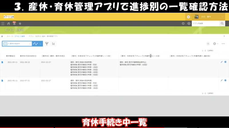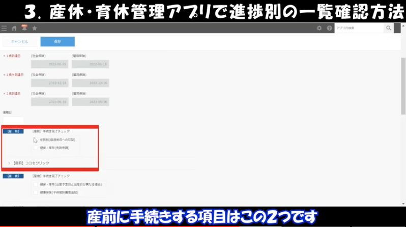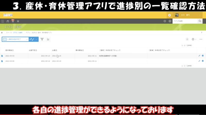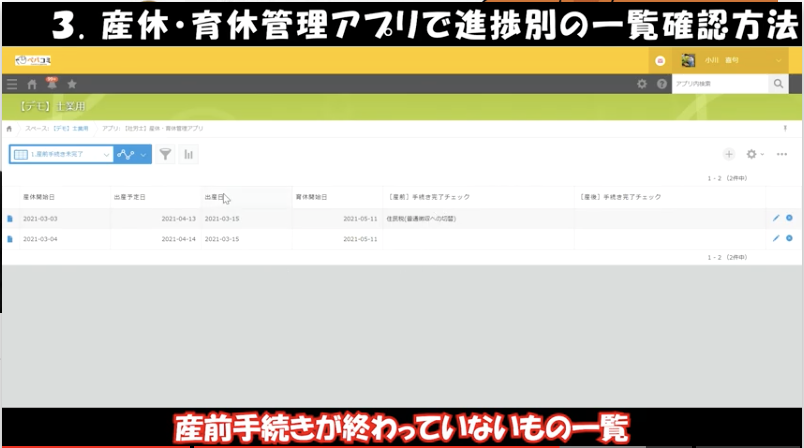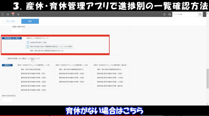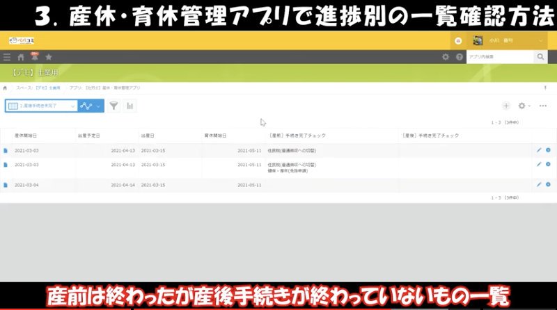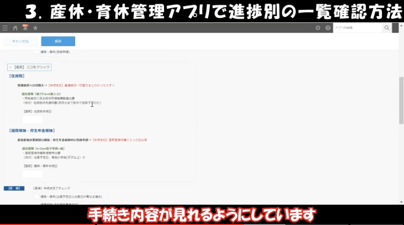 ③産休・育休管理アプリで進捗別の一覧確認方法