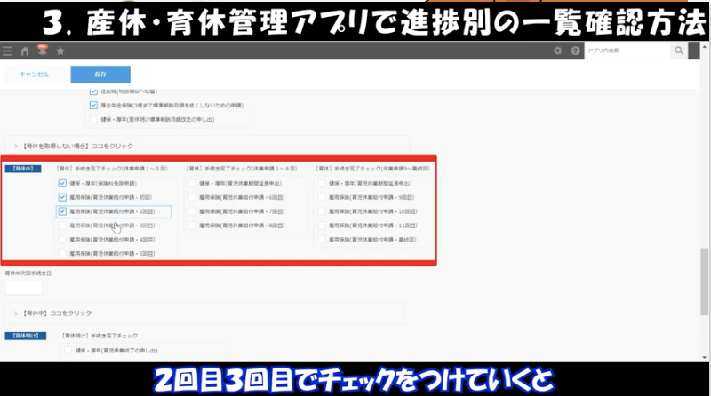 育休中にお場合は2回目3回目でチェックをつけていきます。