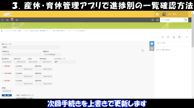 では続いて産休・育休管理アプリです