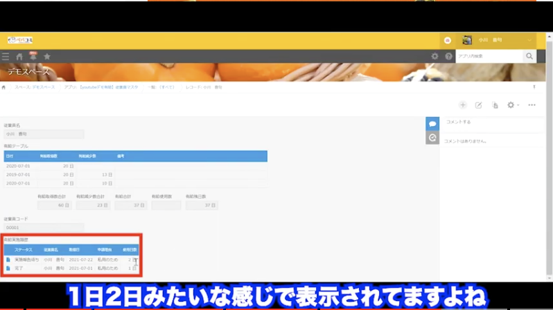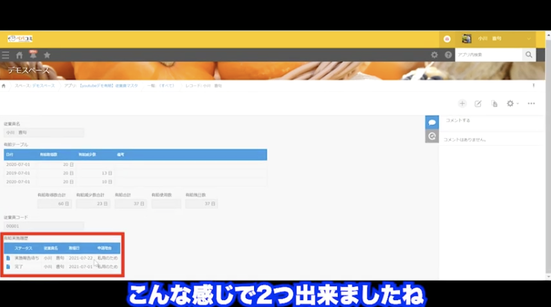先日kintoneを使った有給休暇管理アプリの仕組みを公開したのですが せっかくなのでそのアプリの作り方を見せようと思って動画にしています