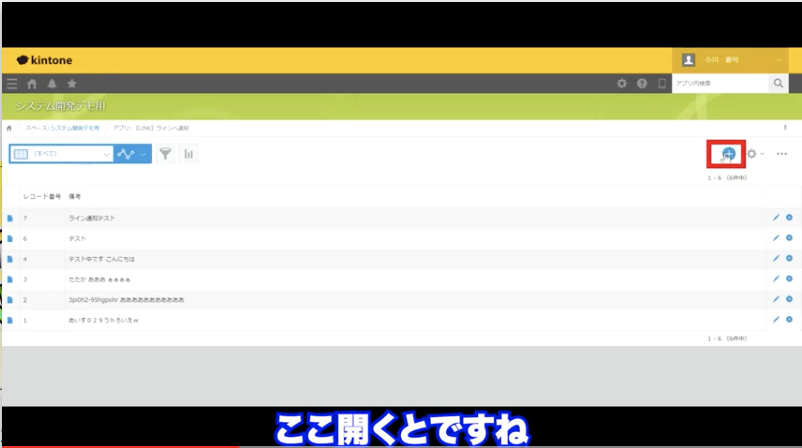 kintoneのフィールドに入力した情報をラインで通知という流れになりました