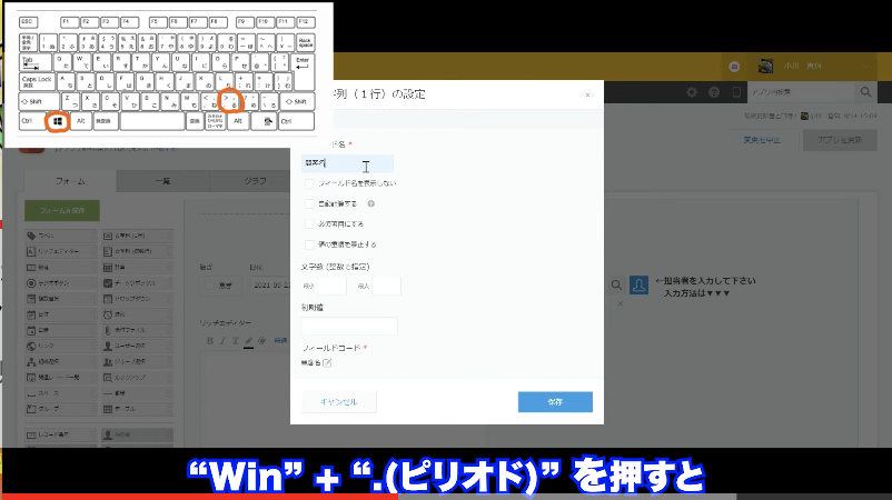 “Win” + “.(ピリオド)” で絵文字が打てます!