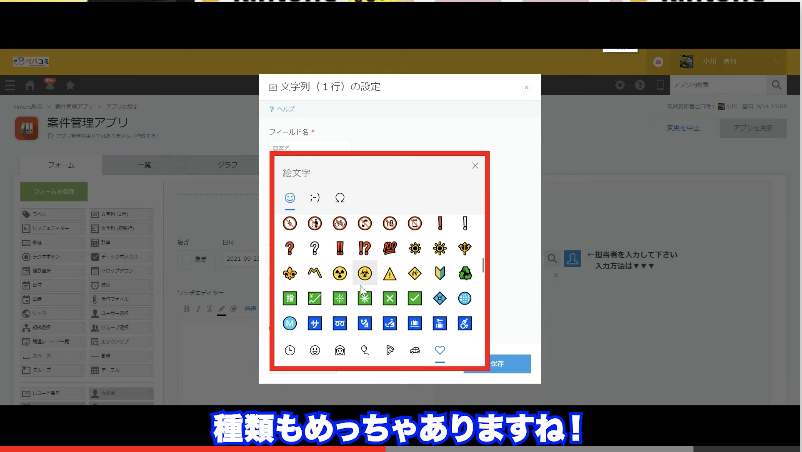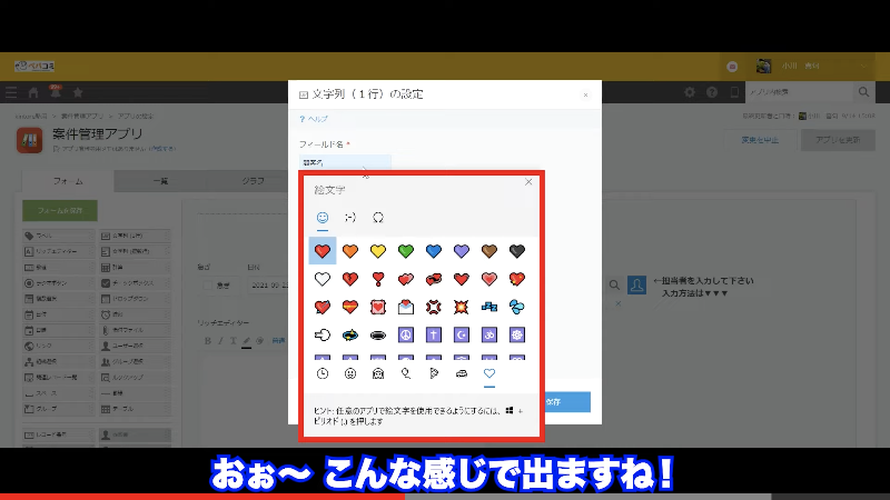 というご希望に試しに調べてみようという流れから早速挑戦!するとなんとkintoneで沢山の絵文字が使えたんです!