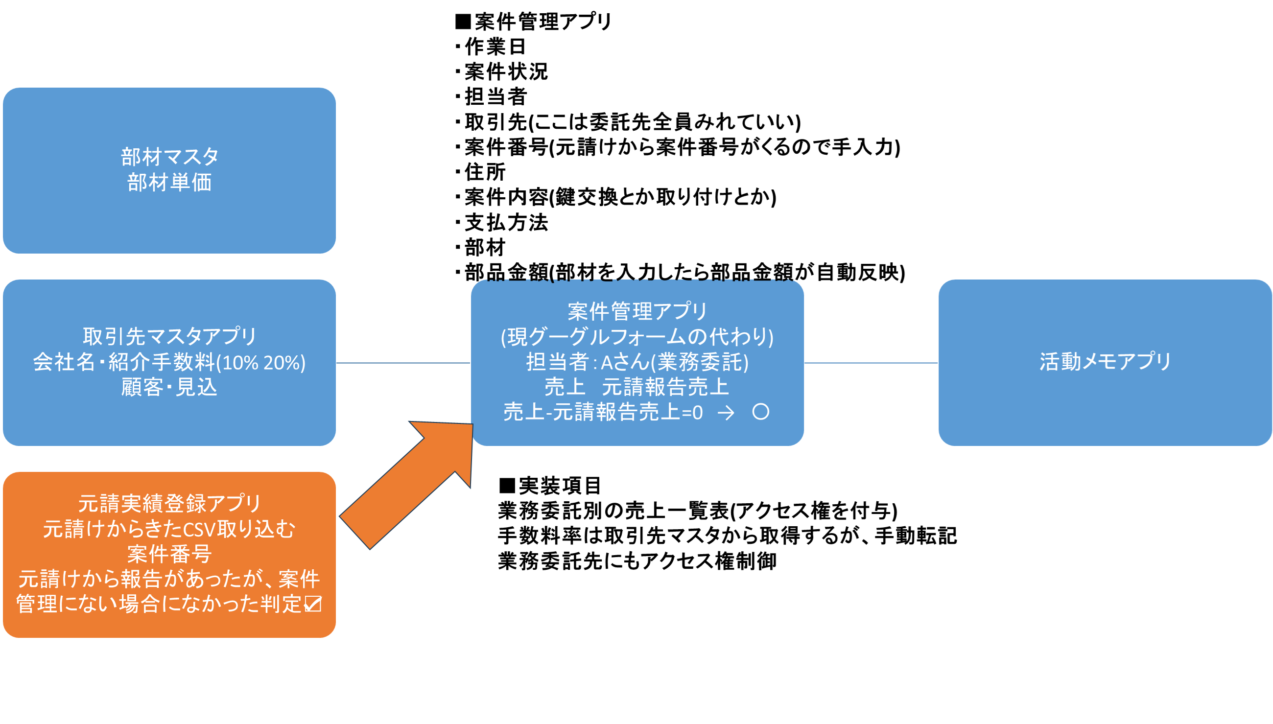 元々はスプレットシートを利用して案件の報告をまとめていたが、案件毎の報告に時間がかかる事や、合計の集計などが上手くいかないことが多かった