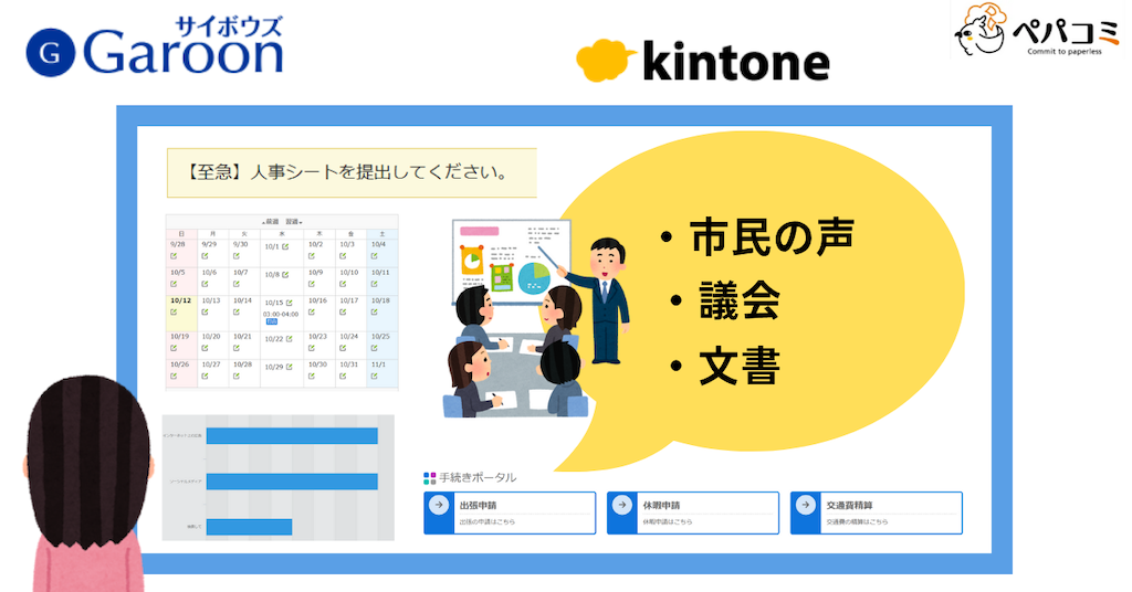 自治体の「共通認識づくり」「業務の抱え込み防止」にkintoneを活用する場合は、ペパコミ株式会社へご相談ください