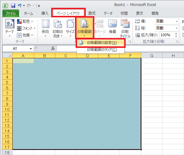 1ページに設定したい範囲をドラック&ドロップで選択し、