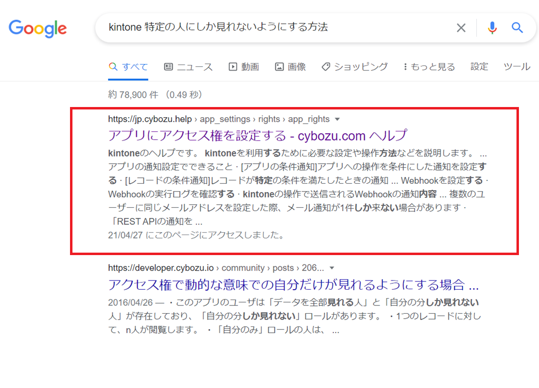 大体1ページ目にはkintoneのヘルプページが出てくると思います。