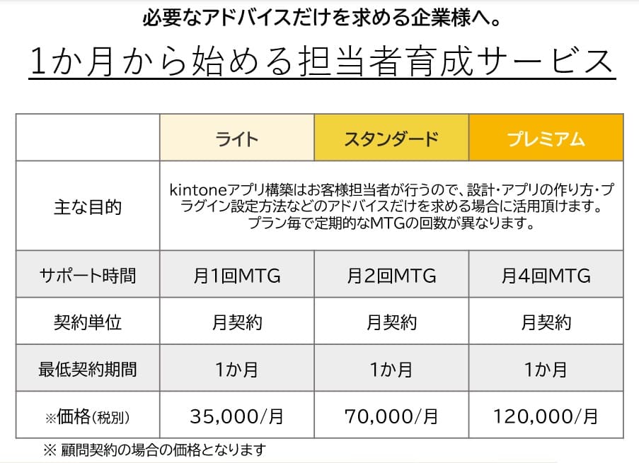 kintoneの理解が深まり、将来的にkintoneの改修を内製化できるようになれば、社内にエンジニアを雇うよりも圧倒的なコストパフォーマンスを発揮します。
