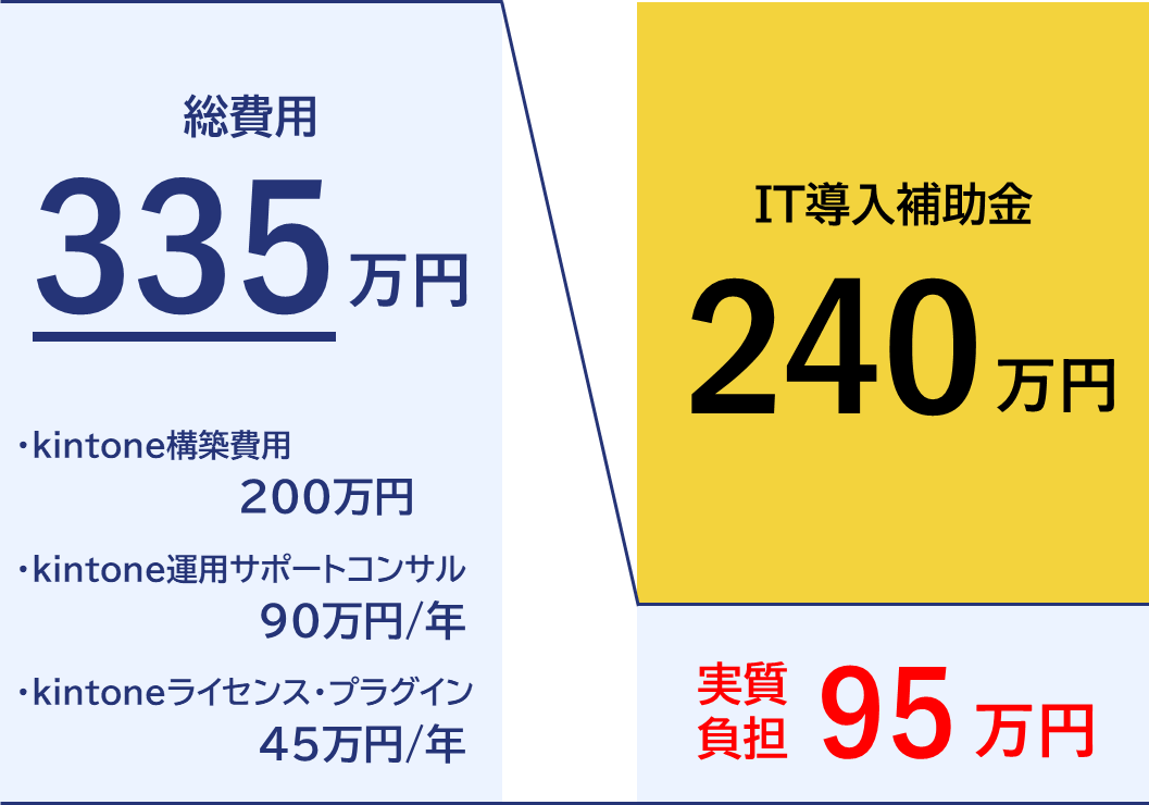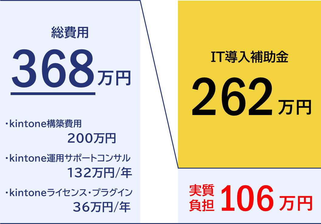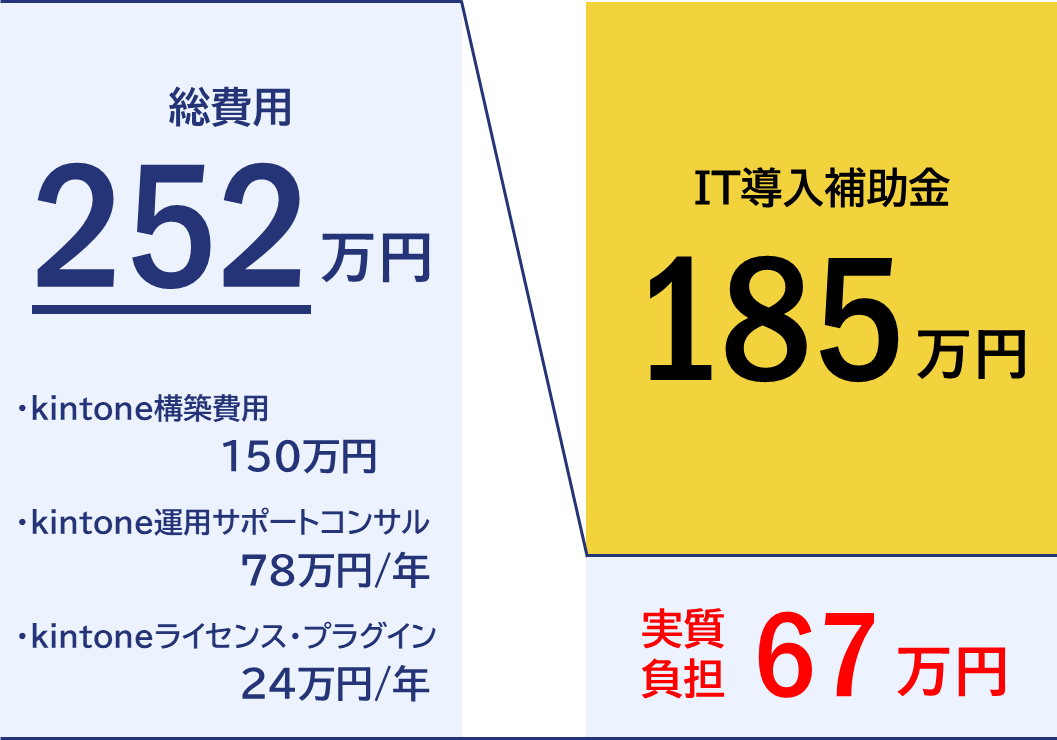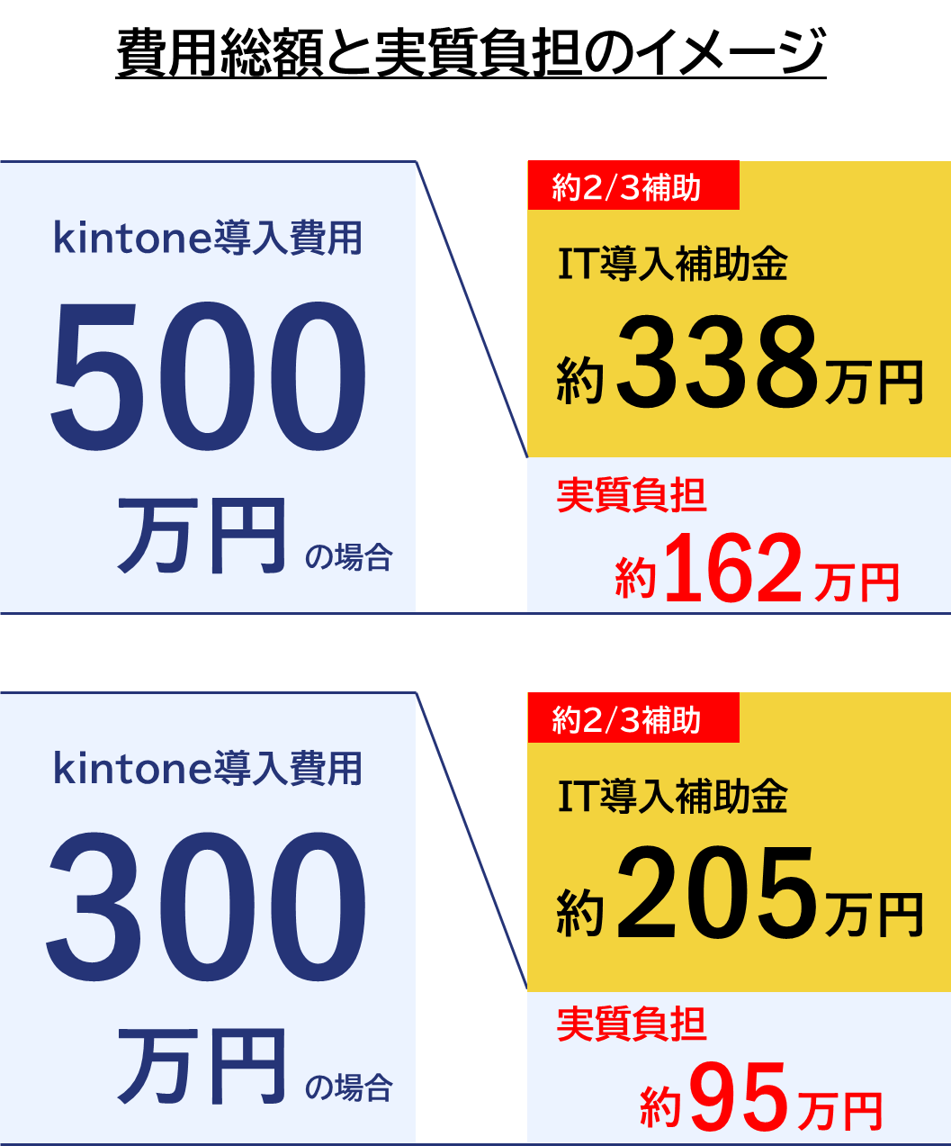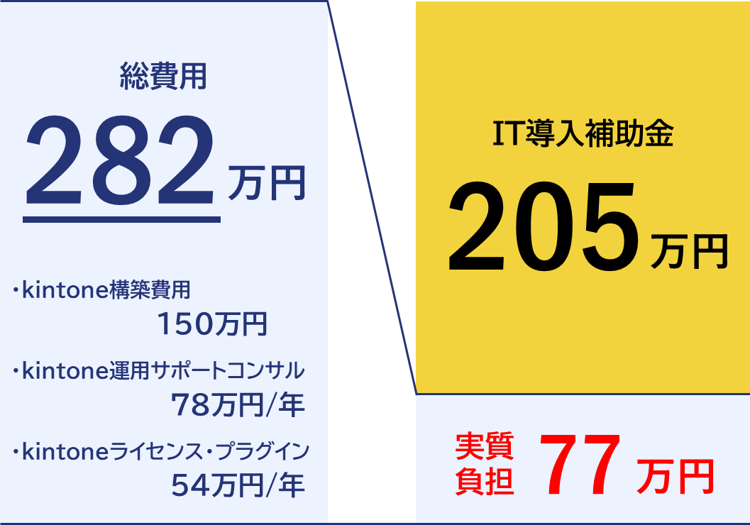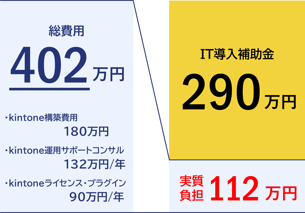kintone導入にかかる費用の一部が補助対象となり(*)、最大350万円まで交付されます。