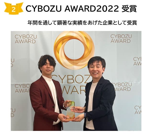 2022年には年間を通じてのkintone導入実績などが評価され、サイボウズ株式会社より表彰して頂きました。