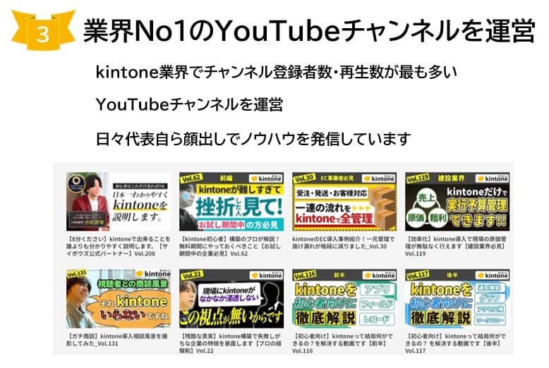 kintone導入支援、担当者育成においては多くの実績がございます。