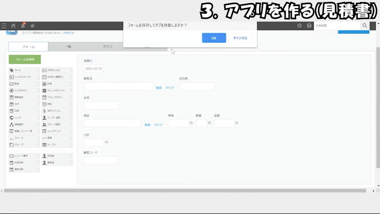 kintone(キントーン)で見積書アプリを作成する過程を、デモ画面をもちいて解説していきます。