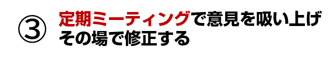 納品後は、実際にシステムを使う関係者で定期的に集まってミーティングを開催します。