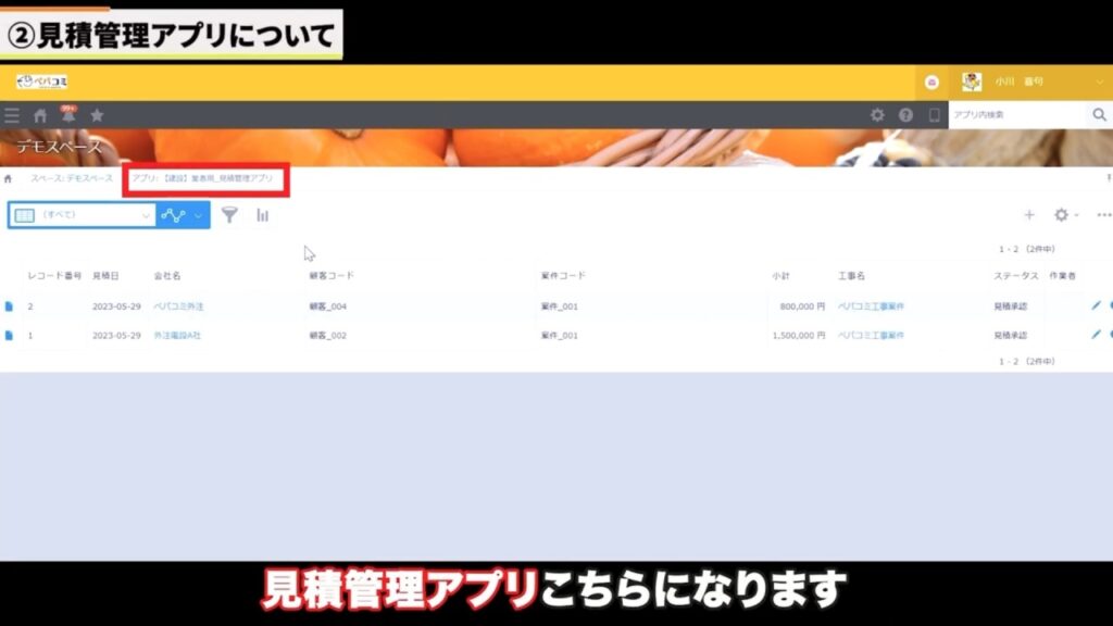 2つ目が、協力会社さん用の「見積管理アプリ」です。簡単に、使い方を見ていきましょう!