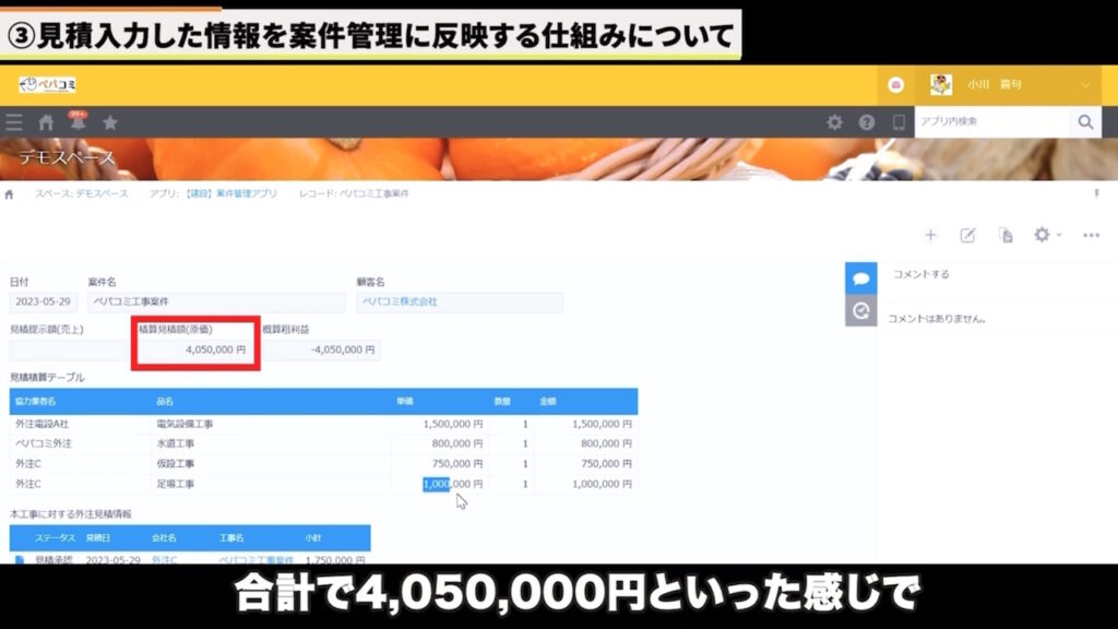 そこで今回は、kintoneの「見積管理アプリ」を起点に、「協力会社の見積データを自動集計する仕組み」をご紹介します!