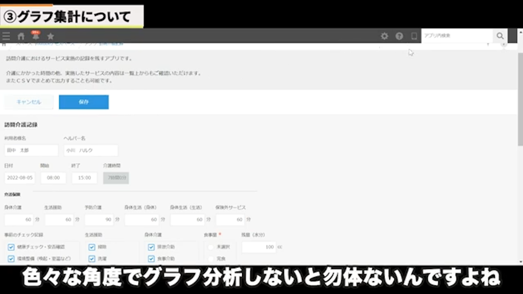 例えば、利用者の体調や精神状態、特別な注意事項などを入力することで、ヘルパー間の連携が可能です。