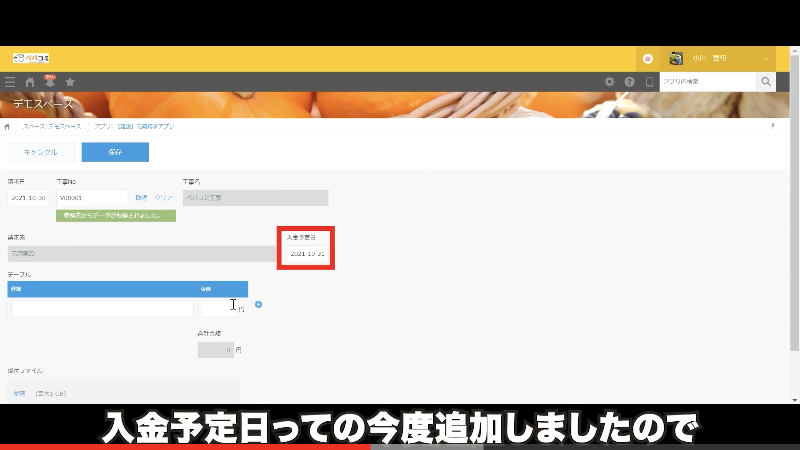 入金予定日っていうのを今度追加しましたので、入金予定日を入れます。で、保存します。