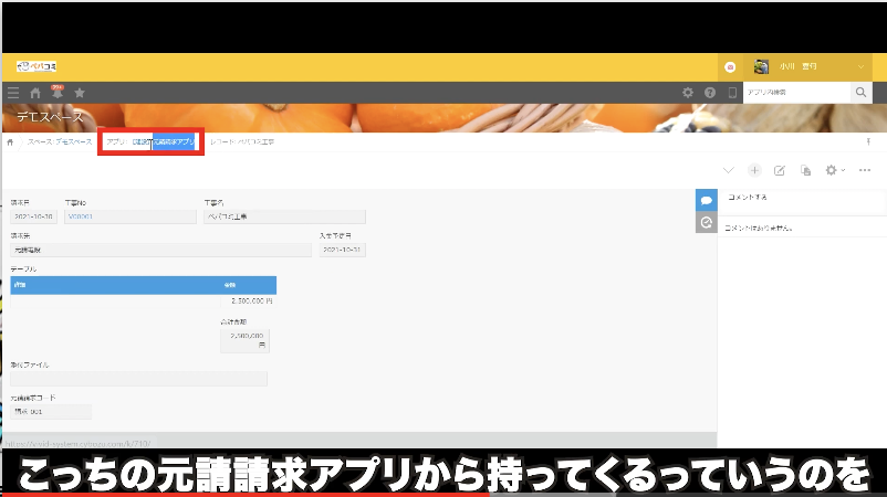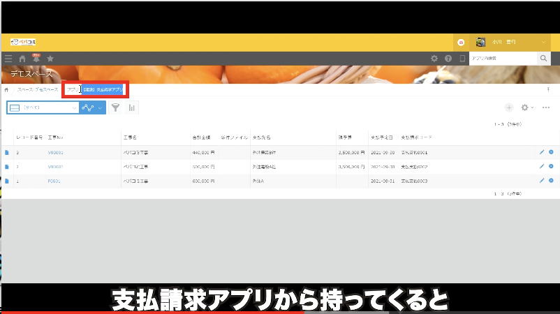 前回の原価管理のところでは、支払請求アプリ。いわゆる外注さんとか下請けさんから来た
