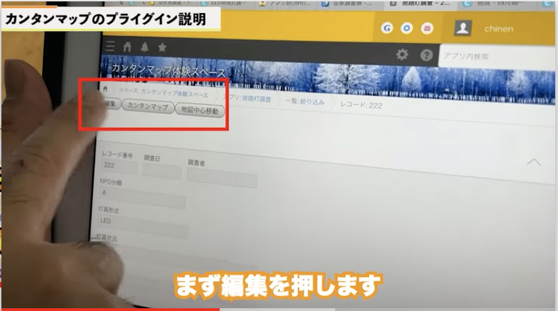 kintoneの画面が開いて編集を開きます