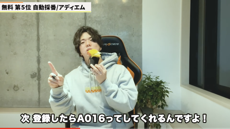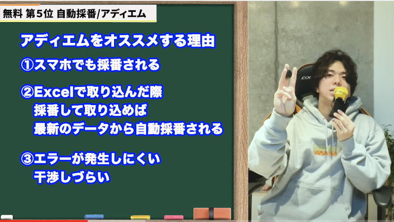第5位は・・・自動採番(アディエム)※前回無料版第2位