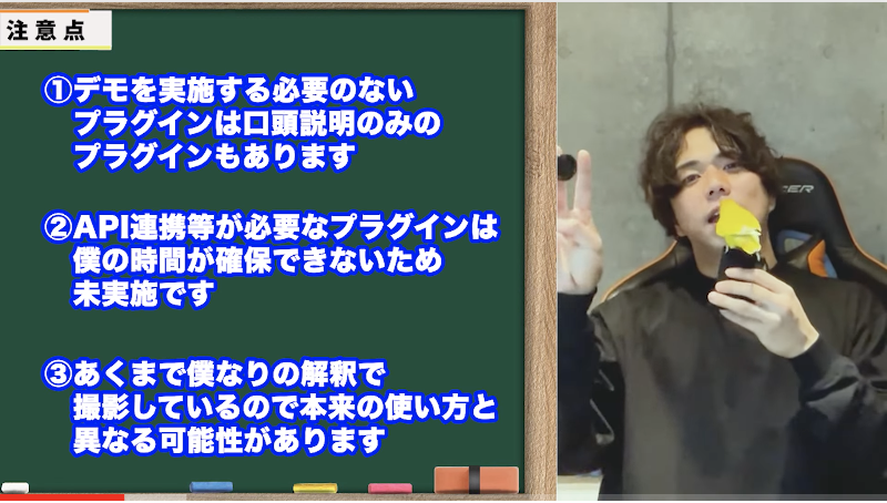 ①デモを実施する必要のないプラグインは口頭説明のみのプラグインもあります
