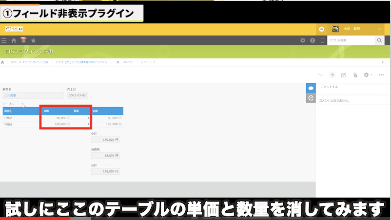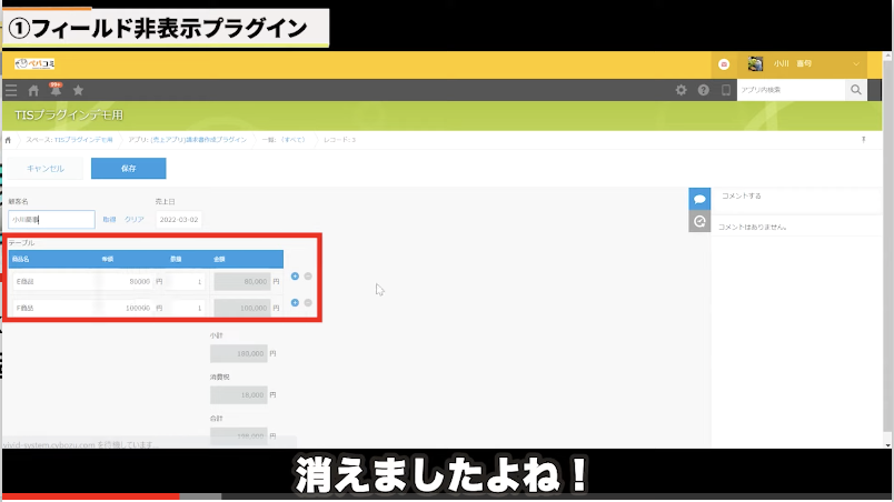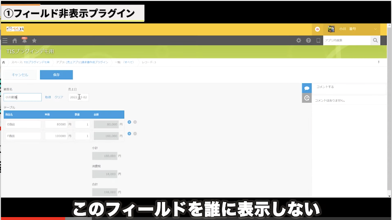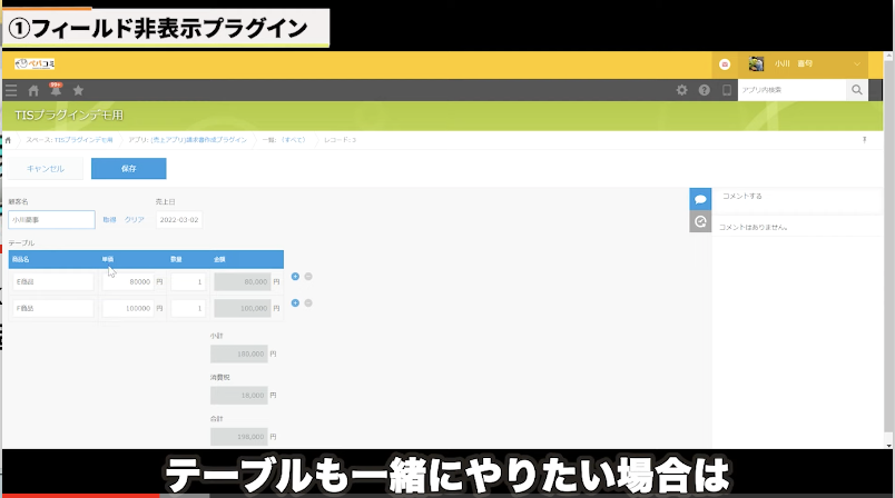 これはkintoneの標準機能だとテーブルの中の項目に関してはアクセス権で制御出来たりはしませんのでプラグインで対応する必要性があるっていうことですね