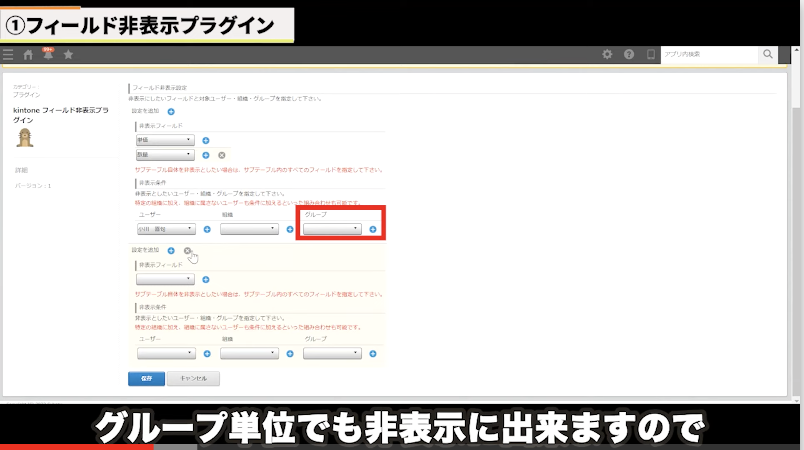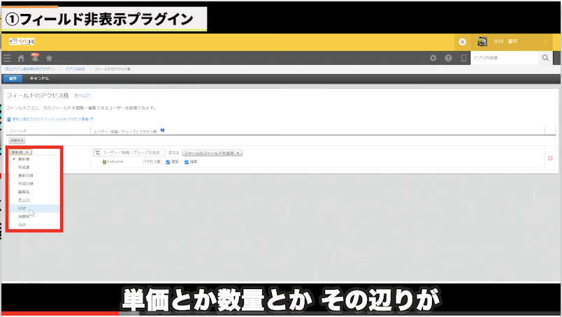 フィールド非表示プラグインはこのフィールドを誰に表示しないっていうのが出来るプラグインですが、kintoneってフィールドのアクセス権でそれが出来るんですよね