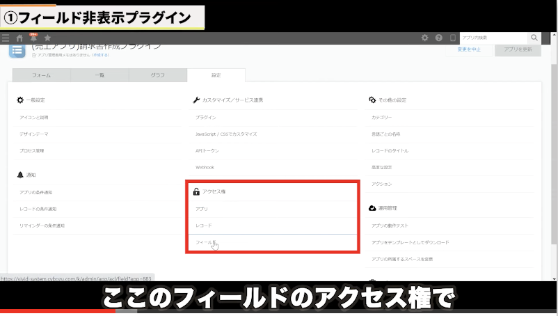 ここのフィールドのアクセス権でkintoneの標準機能が出来るんですが