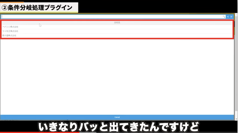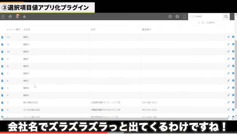 完了したので見てみると顧客マスタに会社名でズラズラズラっと出てくるわけですね!