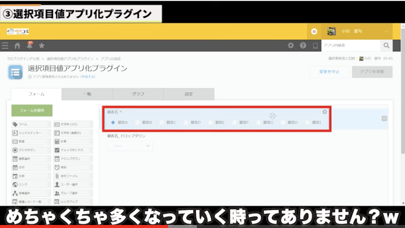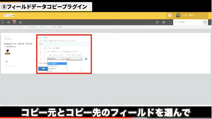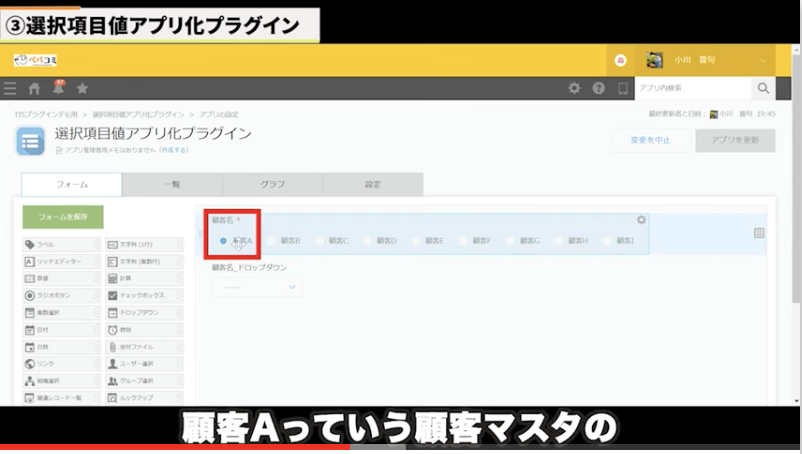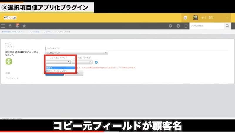 コピー元フィールドが顧客名 これはドロップダウンもラジオボタンどっちもできます