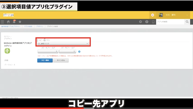 ここでどのフィールドからコピー元とコピー先のフィールドを選んで設定すると