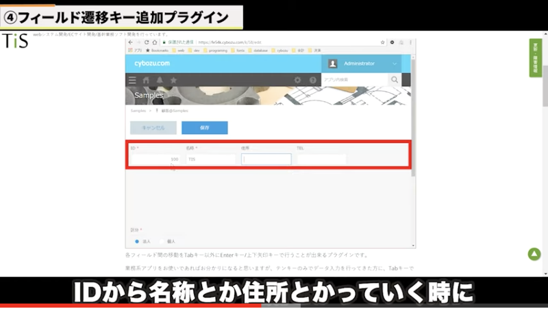 要はこれですねIDから名称とか住所とかっていく時に、通常Tabキーで移動するんですけどこれが矢印キーでできた場合Enterキーで移動できたりするプラグインですね