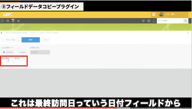 これは最終訪問日っていう日付フィールドから受注日っていう日付フィールドにコピーすることが出来ます コピーって押すと