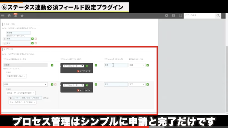 プロセス管理と連動してフィールドに必須項目を設定したりとか自動反映したりとかっていうことが出来るプラグインとなっています 早速画面で見ていきましょう!