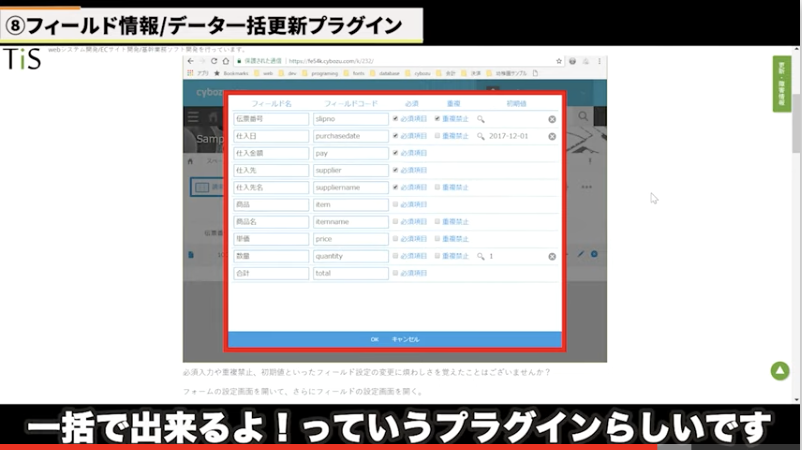 1つ1つのフィールド編集で必須とか重複禁止が面倒くさい人用に一覧で一括で選択設定できるプラグイン